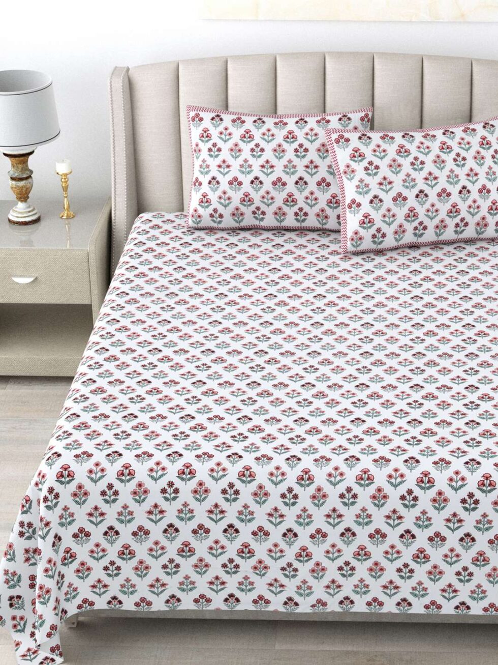 100% Pure Cotton Traditional Printed Bedsheet for Double Bed King Size Bedsheet with 2 Pillow Covers